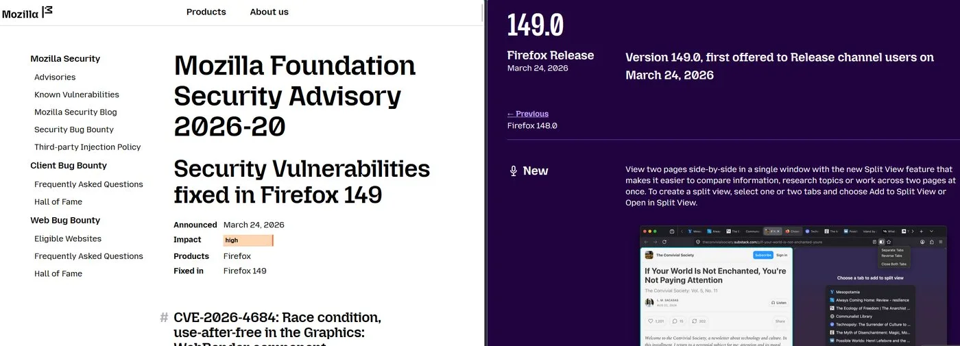 Firefox 也列出了這次修補的資安漏洞 Mozilla Foundation Security Advisory 2026-20